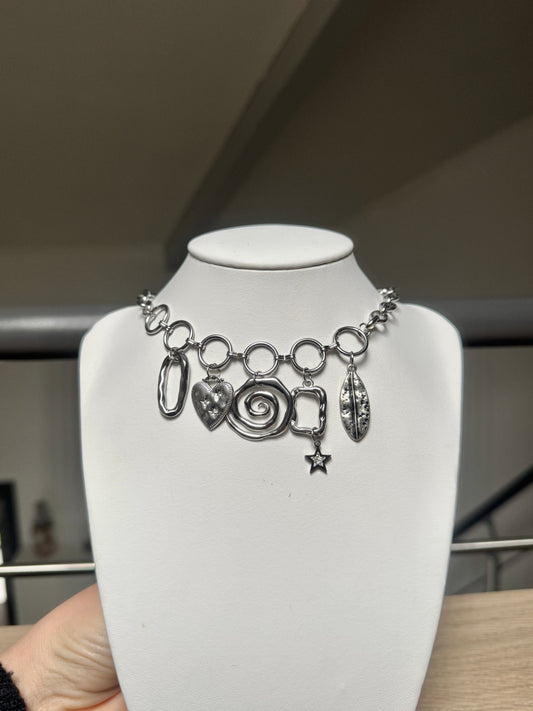 Ces colliers upcyclés et uniques sont conçus à partir d'anciennes pièces de bijouteries. Chaque création raconte une histoire, donnant une nouvelle vie à des éléments du passé. Le concept repose sur l'art de réinventer et de sublimer des matériaux existants, pour offrir des bijoux à la fois écologiques et pleins de caractère.